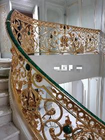 銅樓梯扶手,銅欄桿定制廠家材料:黃銅、紫銅,采用實心鑄壓銅花等工藝規(guī)格:根據(jù)客戶實際要求定制尺寸:定 ..