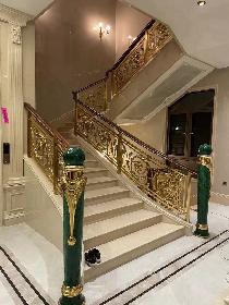 別墅銅藝樓梯-銅樓梯欄桿色彩變化:銅欄桿會隨著時間的推移逐漸氧化,形成獨特的綠色或青銅色,增添了古樸 ..